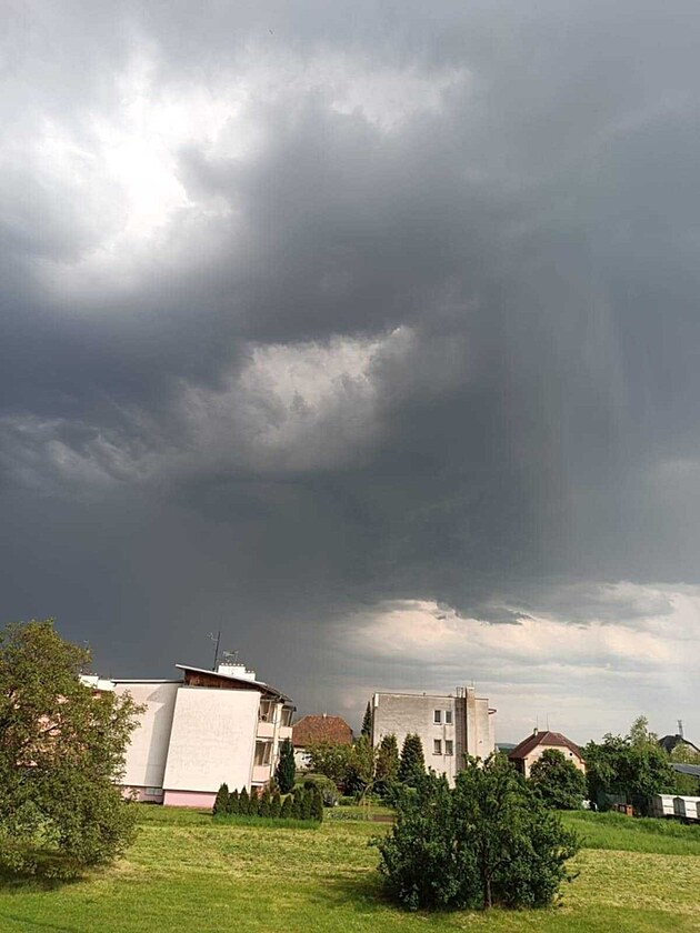Takto zachytila blížící se bouřku ve skupině Lovci bouřek, extrémní počasí a jiné jevy Alžběta Kellerová v Brodku u Přerova. (3. května 2025)