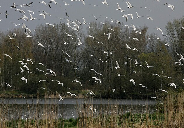 Podobný pohled na hejna racků je na Chomoutovském jezeře u Olomouce už minulostí, ochránci přírody se ale snaží vytvořit podmínky pro jejich návrat.