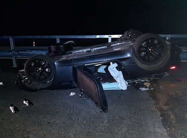 Na uzavřeném úseku D35 poblíž Skrbně na Olomoucku se v pondělí v noci po nárazu do hromady štěrku převrátil na střechu jaguar, jehož řidič nerespektoval zákaz vjezdu.