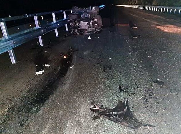 Na uzavřeném úseku D35 poblíž Skrbně na Olomoucku se v pondělí v noci po nárazu do hromady štěrku převrátil na střechu jaguar, jehož řidič nerespektoval zákaz vjezdu.