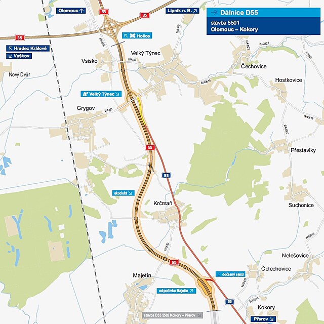 „Jedná se o první část dálničního propojení Olomouce a Přerova, které nahradí kapacitně již nedostačující silnici I/55. Dojde tak k zásadnímu zvýšení bezpečnosti a plynulost dopravy. Díky dálnici se také výrazně zlepší životní podmínky obyvatel obce Krčmaň, z níž bude odvedena tranzitní doprava,“ řekl Mátl v dubnu při slavnostním zahájení stavby.