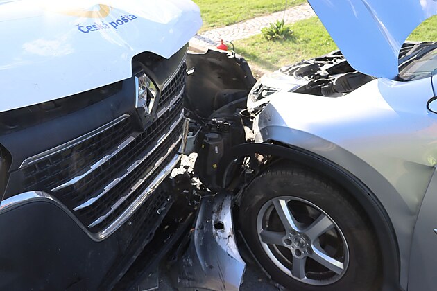 Řidička poštovní dodávky nedala při odbočování přednost protijedoucímu autu a oba vozy se poté srazily.
