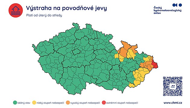 Výstraha ČHMÚ na povodňové jevy z 8. července 2025.