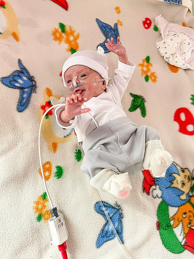 V olomoucké fakultní nemocnici se podařilo zachránit předčasně narozenou Viktorku, která při porodu vážila jen 386 gramů.