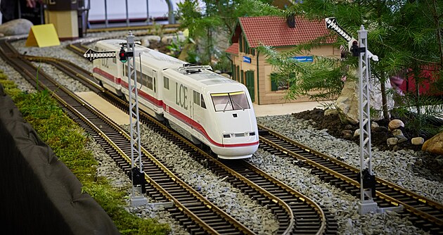 Detailní záběr na vlak ze zahradní železnice Jana Bartoně.