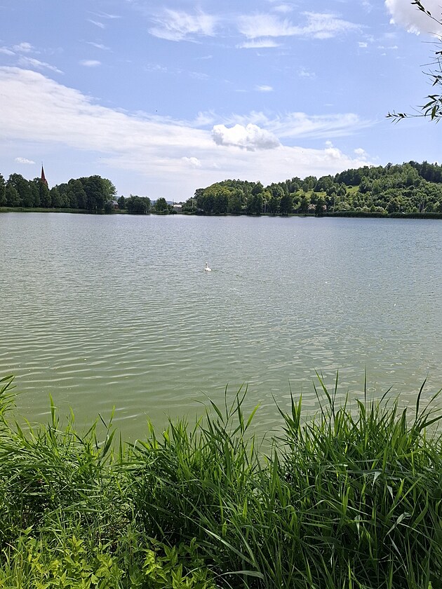 Mládě labutě, které se zamotalo do rybářských vlasců v rybníku Oborník v Zábřehu, zachránili hasiči.