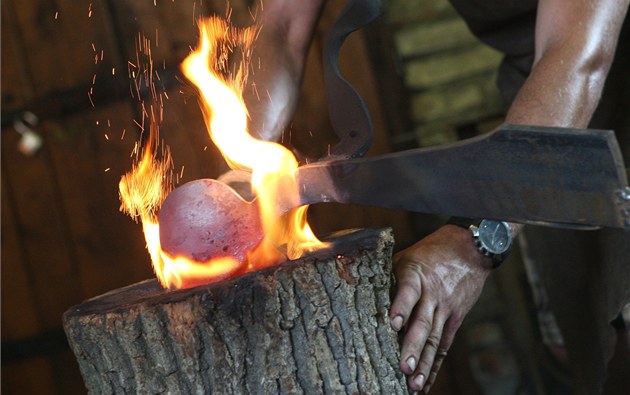 Kovářská práce je i díky ohni a jiskrám divácky velmi atraktivní, také proto na Helfštýn o víkendu mířily zástupy lidí.