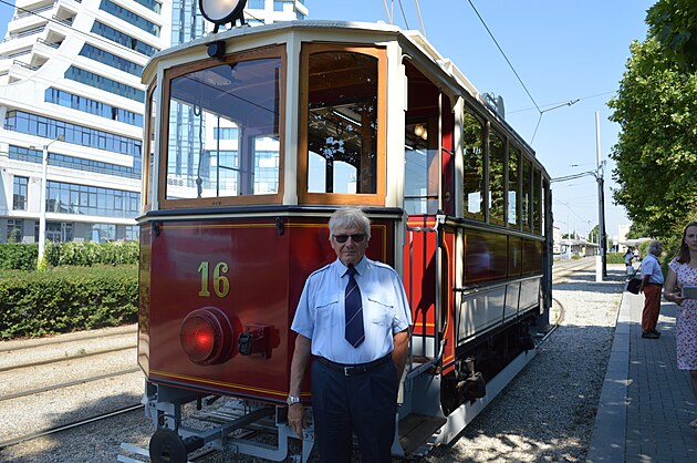 Do ulic Olomouce po 68 letech znovu vyjela obnovená historická tramvaj číslo 16, která tu jezdila v letech 1914 až 1956. (22. července 2024)