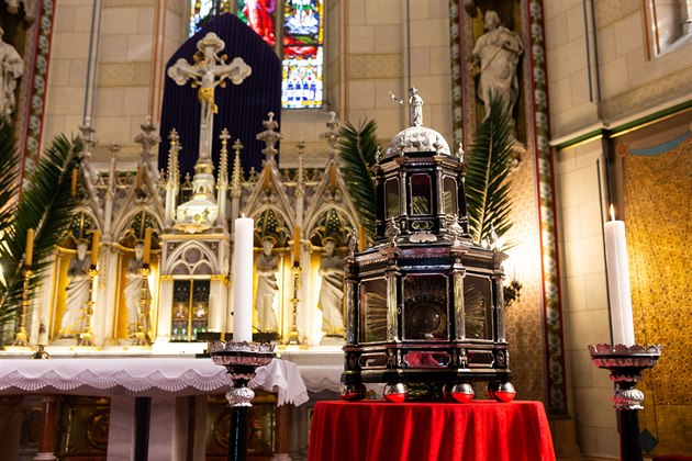 Od úterý jsou v olomoucké katedrále sv. Václava vystavené ostatky sv. Pavlíny, patronky města a také ochránkyně před morem. Lidé se k ní při nynější koronavirové pandemii za dodržení všech bezpečnostních pravidel mohou přicházet modlit každý den. (7. duben 2020)