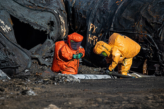 Odstraňování následků havárie cisternového vlaku s benzenem v Hustopečích