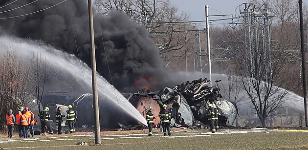 Hasiči zasahují v Hustopečích nad Bečvou na Přerovsku, kde z poškozené železniční cisterny na nákladním vlaku uniká benzen a hoří.