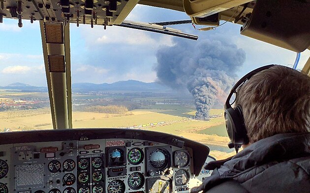 Hasiči zasahují v Hustopečích nad Bečvou na Přerovsku, kde z poškozené železniční cisterny na nákladním vlaku uniká benzen a hoří.
