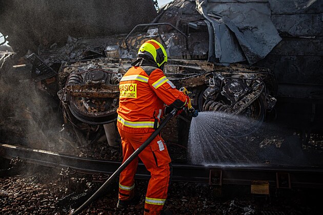 Hasiči v Hustopečích nad Bečvou odřezali 10 kolejových polí. Těžkotonážní pásový jeřáb je přemístil z drážního tělesa. Zároveň odstranil kolejnice a 9 vagónových soukolí, která se při nehodě a požáru od cisteren uvolnila a zůstala na železničním svršku a bránila pohybu techniky. Na místě probíhají další likvidační práce.
