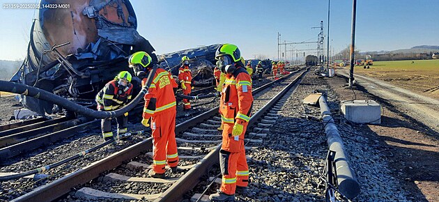 U Hustopečí nad Bečvou pokračuje likvidace následků nehody a následného obřího požáru nákladního vlaku, který převážel toxický benzen. (6. března 2025)