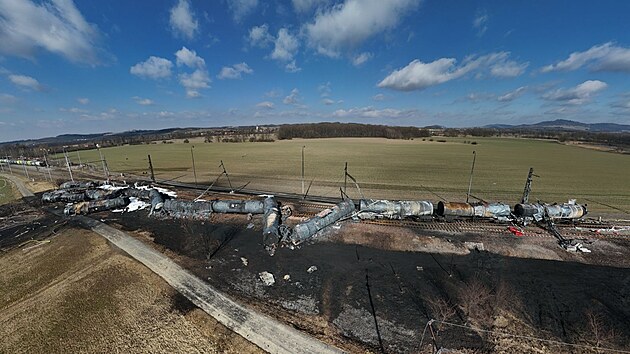 U Hustopečí nad Bečvou na Přerovsku pokračuje likvidace následků nehody a následného obřího požáru nákladního vlaku převážejícího hořlavý a toxický benzen.