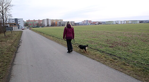 Pozemek u biokoridoru Hloučela, na kterém by v případě změny územního plánu namísto rozšíření biokoridoru mohla vzniknout bytová zástavba doplněná jen o menší parky.