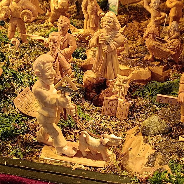 Jan Amos Komenský už zaujal místo v dřevěném betlému loštického řezbáře Jaroslava Beneše.