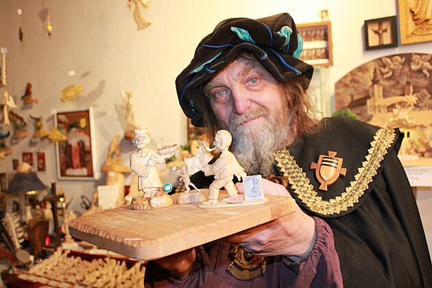 Řezbář Jaroslav Beneš s novými figurkami