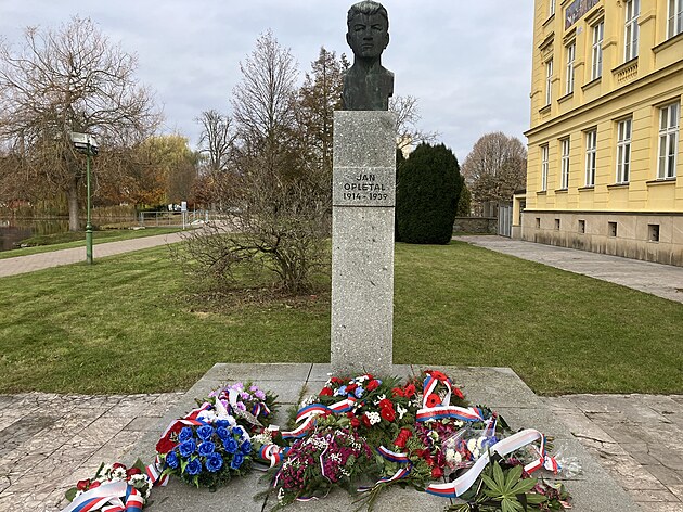 Odkaz Jana Opletala si nejen studenti každoročně připomínají položením věnců před jeho bustu.