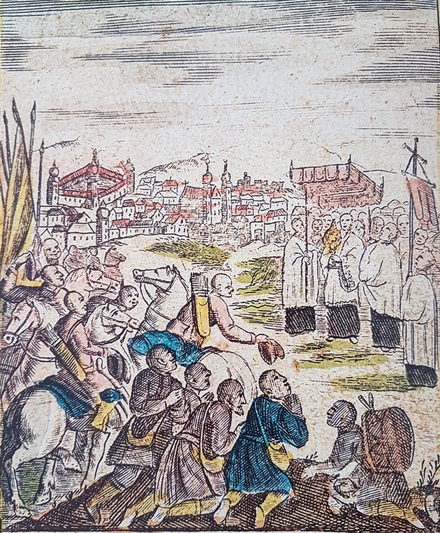 Proti čtyřem tisícům lisovčíků vyšel Jan Sarkander 6. února 1620 z Holešova v čele prosebného průvodu, v rukou měl monstranci s Nejsvětější Svátostí. Celé vojsko před ním padlo na kolena a město ušetřilo.