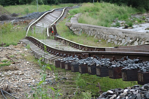 Koleje mezi Velkou Kraší a Kobylou podemlela při povodni rozvodněná říčka Vidnavka.