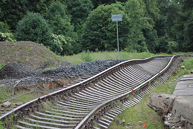 Koleje mezi Velkou Kraší a Kobylou podemlela při povodni rozvodněná říčka Vidnavka.