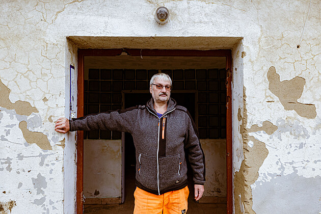Přítel Pavlíny Eliášové Kamil Böhm z Jeseníku před poškozeným domem, který se sice nemá bourat, ale k bydlení není.