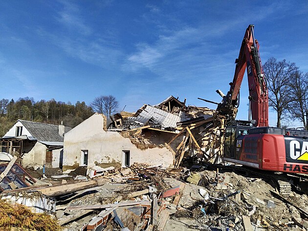 Demolice domu zasaženého povodněmi v Šumperské ulici v Jeseníku (19. října 2024)