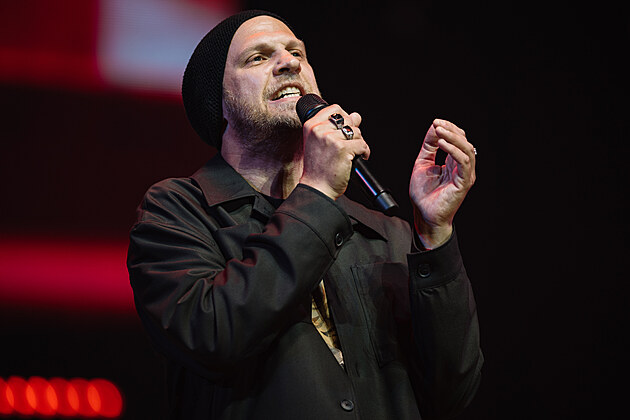 Tomáš Polák z kapely O5 a Radeček během koncertu „Karel Gott ...jeho písně žijí dál!“ v O2 areně (5. listopadu 2024)