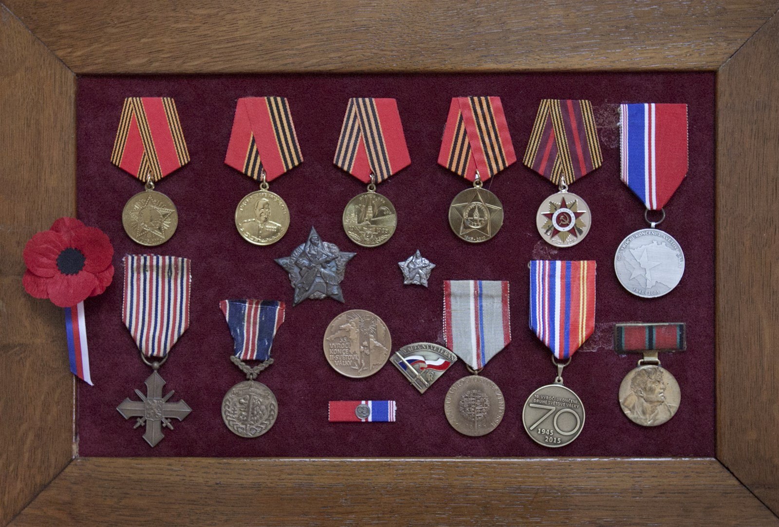 Sada vyznamenání Josefa Jedličky, jehož životní příběh přináší nová kniha Stopy paměti.