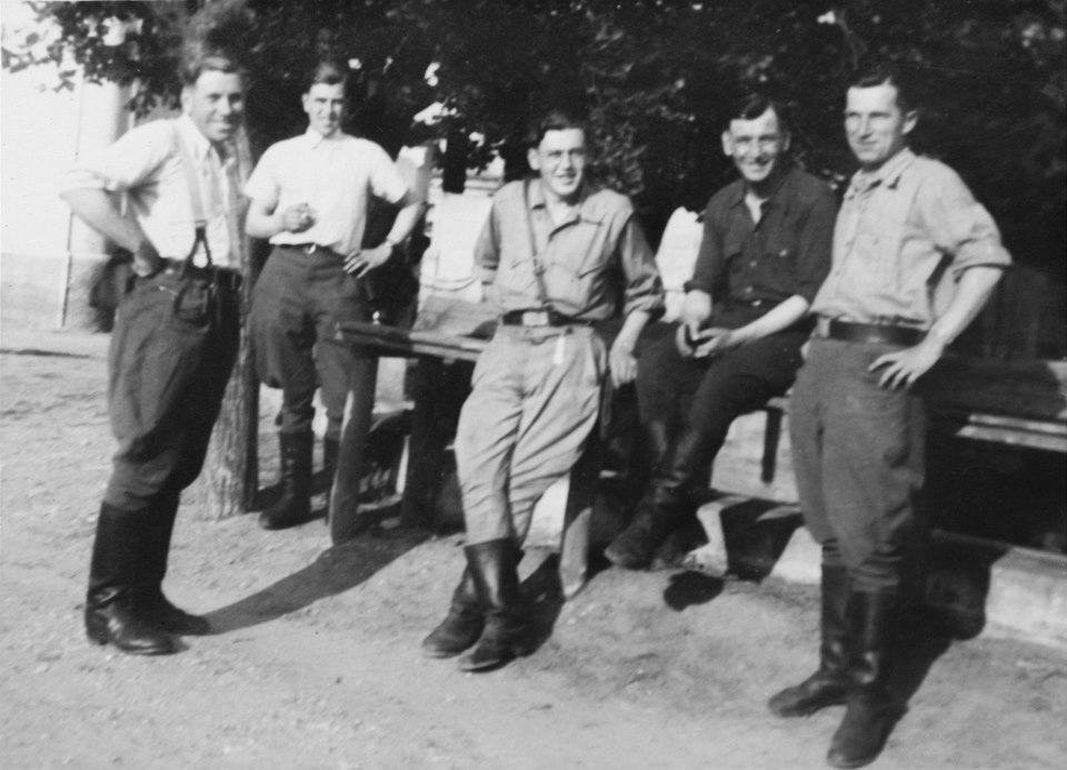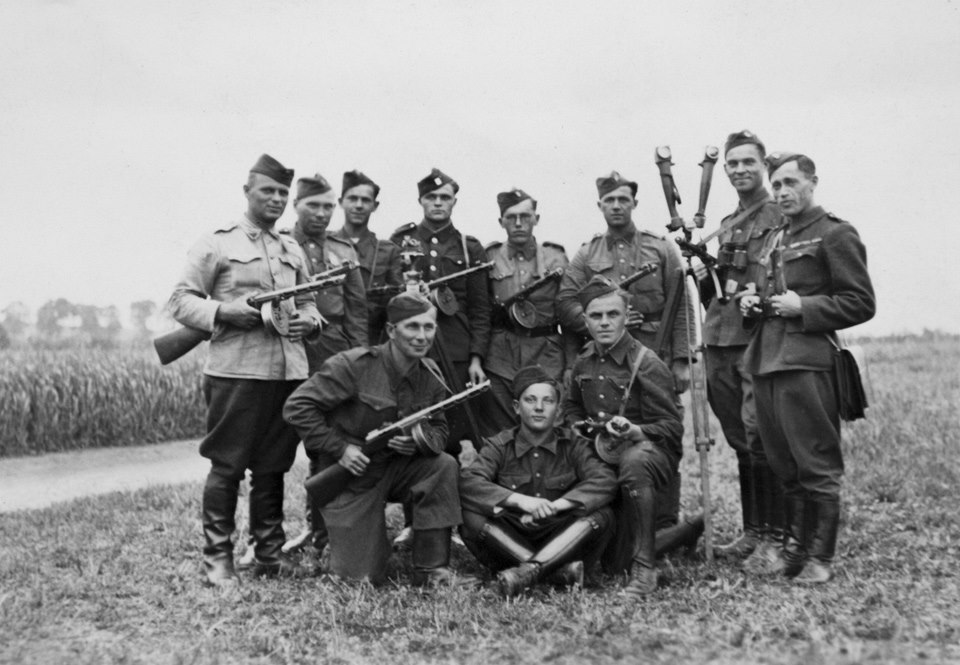 Snímek družstva pátračů 1. československého armádního sboru, jehož členem byl i Pavel Tarnavský (uprostřed), z období po skončení druhé světové války.