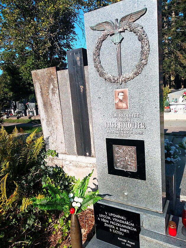 Konrád Popel z Prostějova adoptoval hrob poručíka Josefa Holoubka, který tragicky zahynul při leteckých manévrech v roce 1926. Na jeho renovaci se podílel kameník Pavel Rosberg a dále grafička Alžběta Hanzlová.