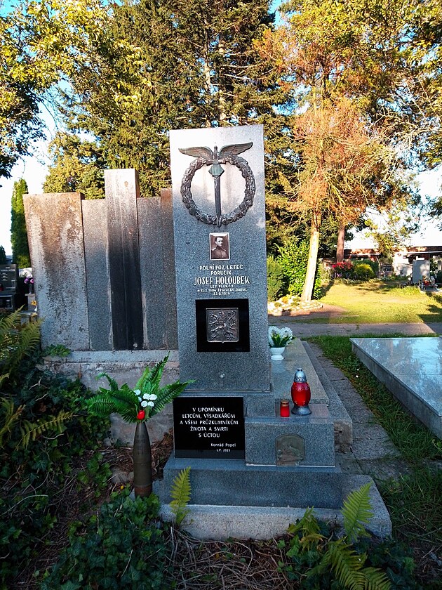 Konrád Popel z Prostějova adoptoval hrob poručíka Josefa Holoubka, který tragicky zahynul při leteckých manévrech v roce 1926. Na jeho renovaci se podílel kameník Pavel Rosberg a dále grafička Alžběta Hanzlová.