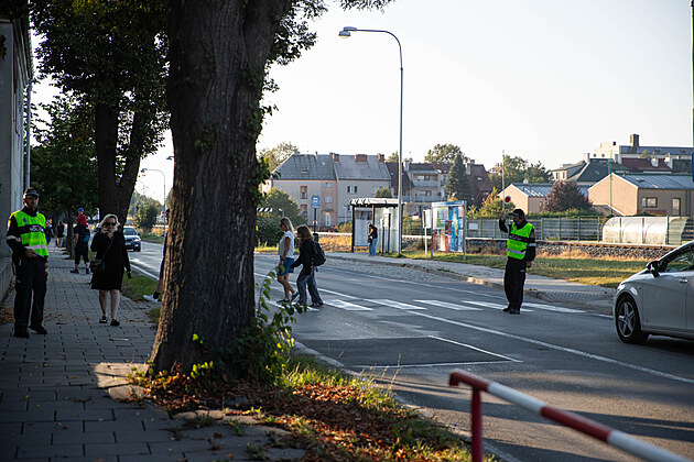 Strážníci 1. září 2025 dohlíželi na bezpečnost školáků ve Svatoplukově ulici v Olomouci.