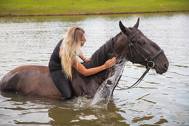 „Před koupáním je nutné sundat téměř všechny kožené postroje – po namočení by totiž kůže ztvrdla a znehodnotila se,“ říká Vanesa Pyszková.