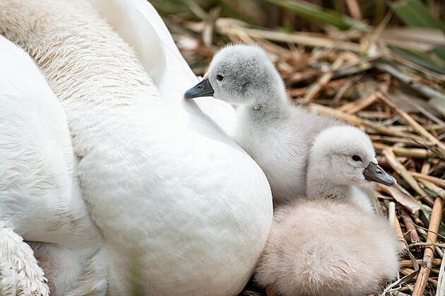 Na rybníku Oborník v Zábřehu na Šumpersku se v květnu 2025 objevila čtyři malá labuťátka.