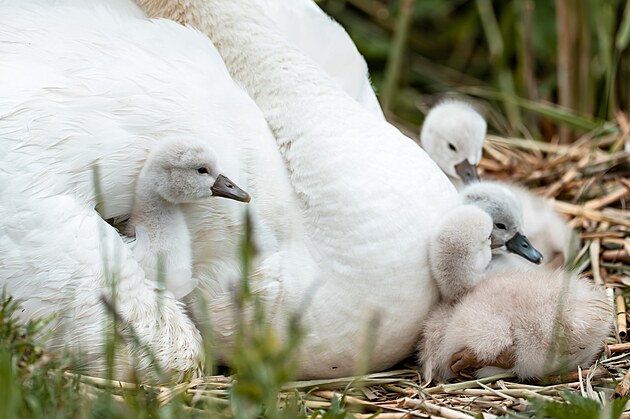 Na rybníku Oborník v Zábřehu na Šumpersku se v květnu 2025 objevila čtyři malá labuťátka.