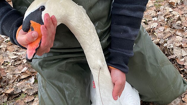 Najít správnou labuť stálo hodně času a nahánění, ale povedlo se. „Háček už měl zarostlý hluboko v kůži, takže nebylo možné mu jej odstranit. A tak se předal záchranné stanici, která musela zřídit operační zákrok a háček po rozřezání kůže vytáhnout,“ popsal Oplocký.