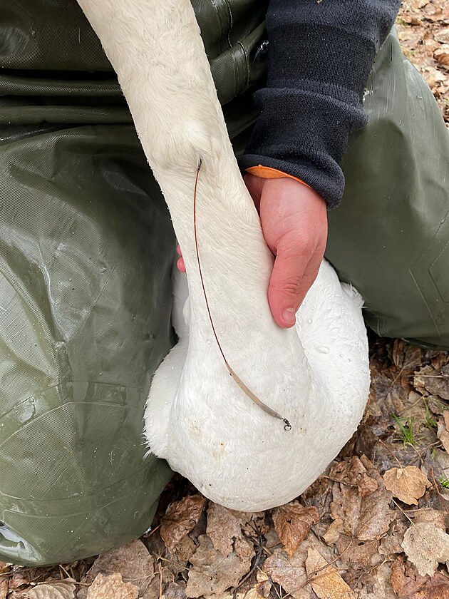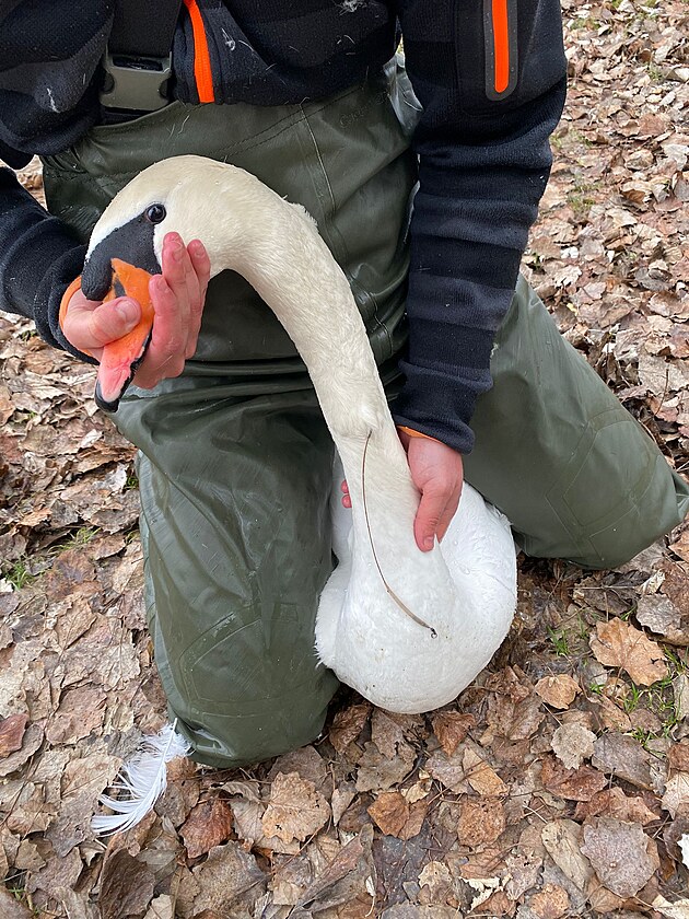 Nebohý labutí sameček měl v krku zabodnutý drát, musel na operaci.
