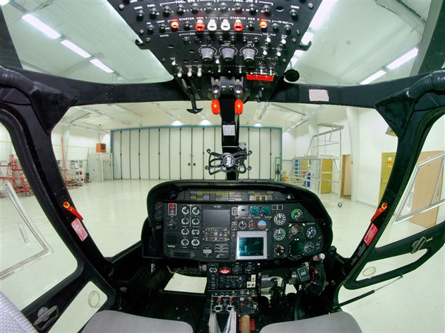 Pohled do pilotní kabiny vrtulníku Agusta A109 K2 slovenské společnosti Air Transport Europe, která začne od ledna 2017 provozovat leteckou záchrannou službu z olomouckého heliportu.