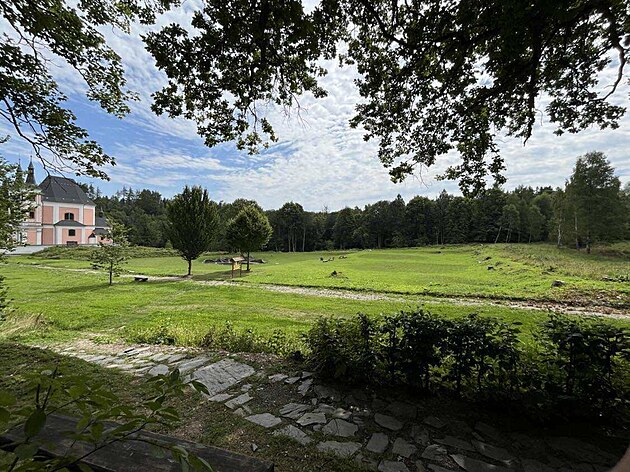 Prostor u libavského kostela, kde má být zčásti obnovena někdejší klášterní zahrada doplněná ovocným sadem.