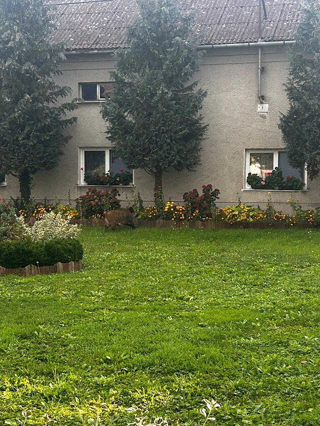 Po zahradě u domu v obci Liboš na Olomoucku zmateně pobíhalo divoké prase.