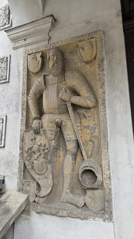 Secesní Sochova vila v Litovli řadu let bez využití chátrala, teď se to má změnit. Na snímku jeden z renesančních náhrobků, které se nachází vedle vchodu.