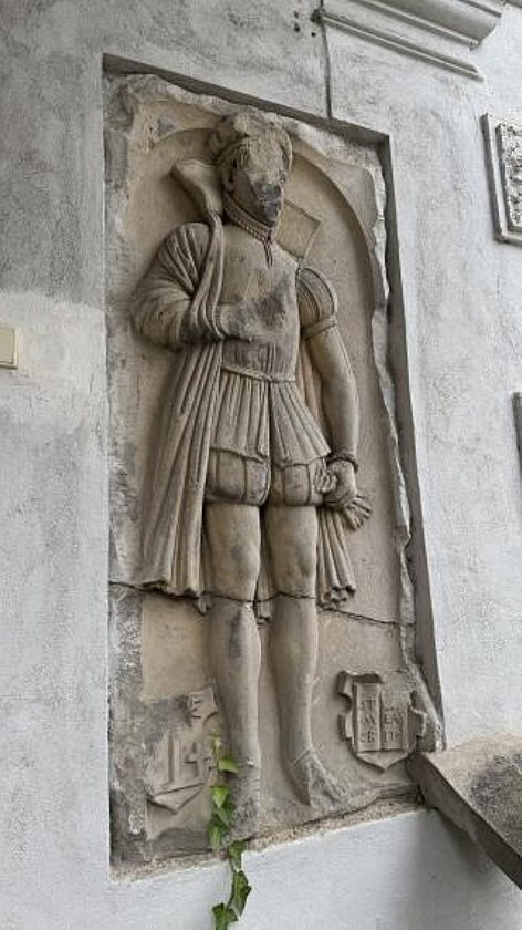 Secesní Sochova vila v Litovli řadu let bez využití chátrala, teď se to má změnit. Na snímku jeden z renesančních náhrobků, které se nacházejí vedle vchodu.