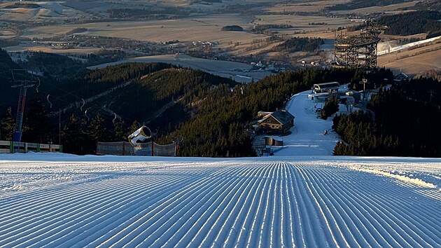 „Nádrž, kterou máme, na vysněžení bez pomoci přírodního sněhu nestačila. A potok, z něhož vodu bereme, teď bohužel umožňuje jenom malý odběr, takže jsme museli několik dní čekat, až nádrž znovu naplníme. Přitom počasí je zrovna teď na zasněžování ideální,“ popsal Hladký.