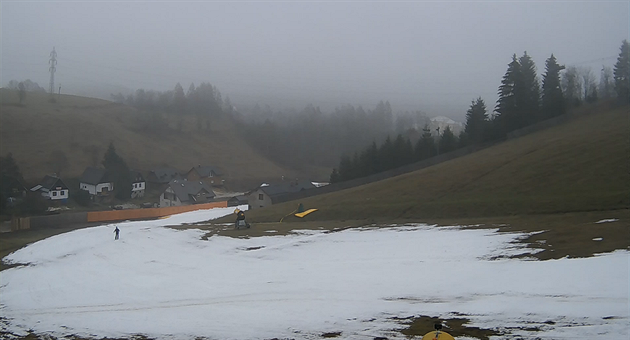 „Chtěl jsem všechno jenom odladit, protože nemělo cenu pokoušet se areál vysněžit,“ uvedl majitel střediska František Kaštyl. Čeká, že by se počasí mohlo koncem příštího týdne umoudřit.