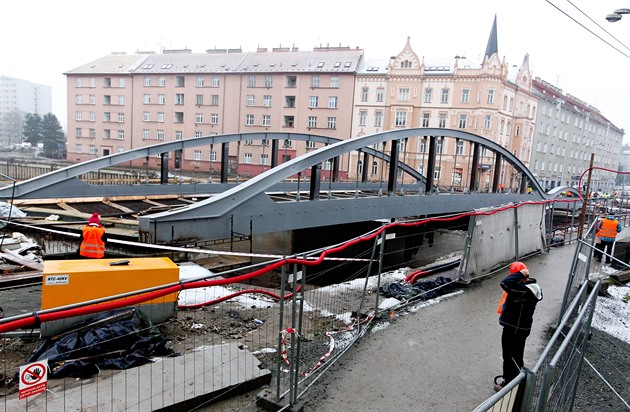 Na mostu nyní dělníci dokončují armování konstrukce, a pokud se venkovní teploty udrží nad nulou, tento pátek by měli začít betonovat. Následně musí beton dva týdny tuhnout.