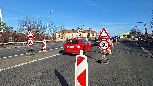 Na průtahu Olomoucí musel být poblíž obchodu BauMax kvůli závadě na mostním závěru uzavřen pravý a připojovací pruh. Ve zbylém platí rychlostní omezení.