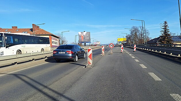 Na průtahu Olomoucí musel být poblíž obchodu BauMax kvůli závadě na mostním závěru uzavřen pravý a připojovací pruh. Nájezd je sice možný, řidiči ale musí vjíždět přímo do zbylého pruhu.