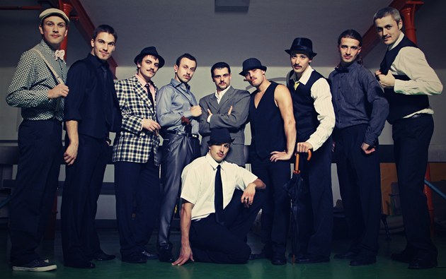 Snímek z kalendáře studentů olomoucké univerzity, který ve stylu kabaretu nafotili při příležitosti akce Movember. Při ní si tisíce českých mužů v listopadu 2012 nechaly narůst knír jako upozornění na problematiku rakoviny prostaty.